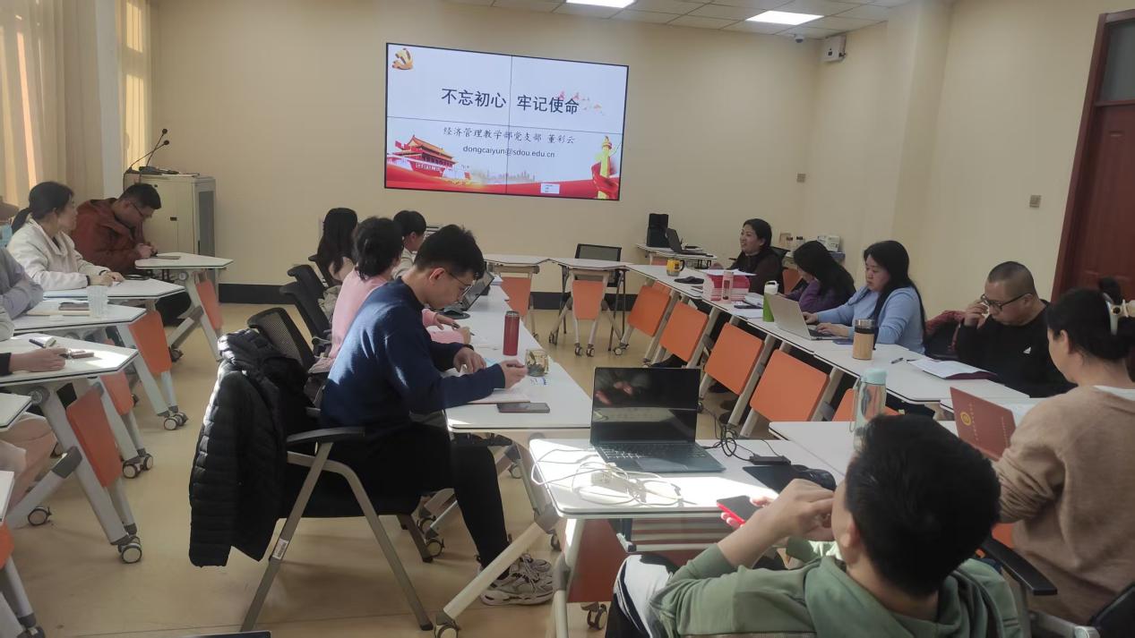 12月8日上午,经济管理教学部党支部书记董彩云讲授“不忘初心、牢记使命”专题党课,支部全体党员参加学习。