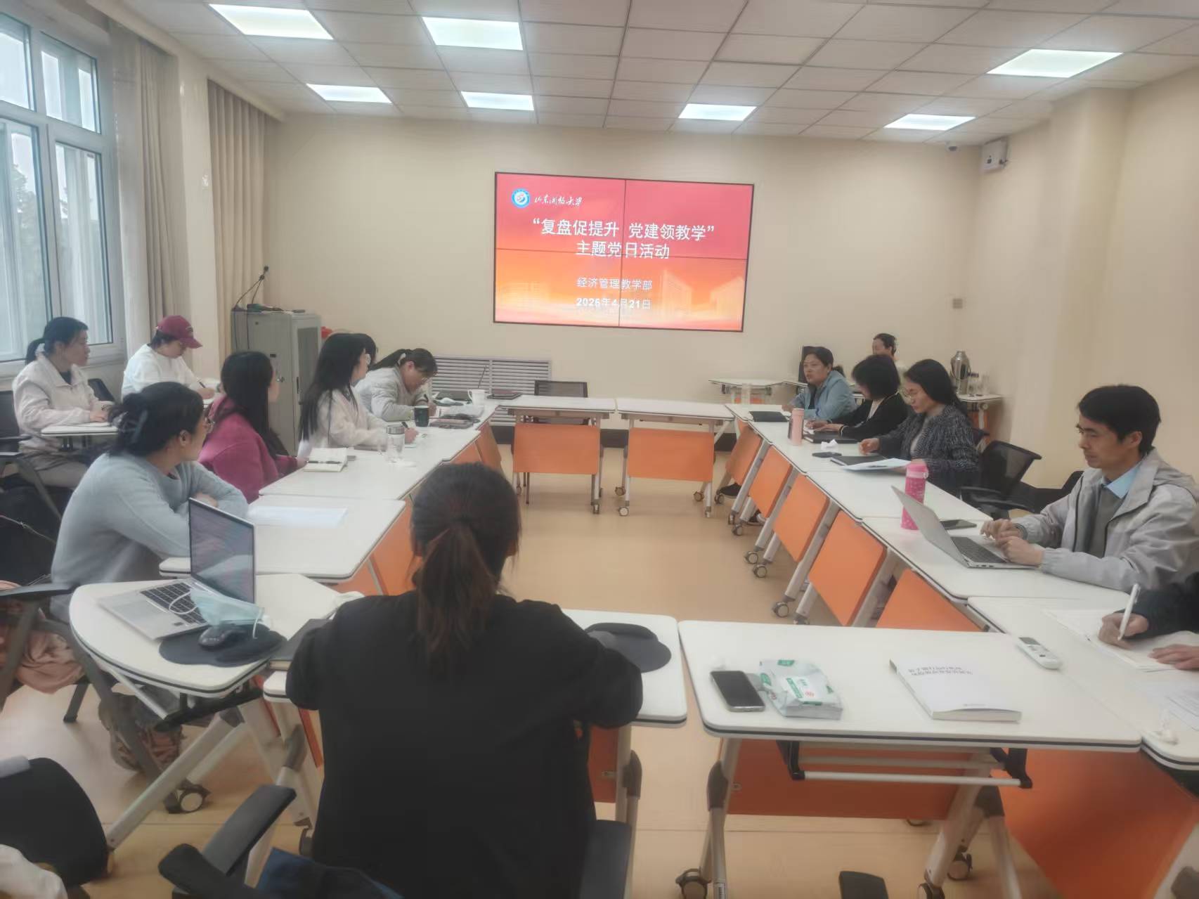为深入总结教学工作经验,以高质量党建引领教育教学高质量发展,4月21日上午,经济管理教学部党支部在舜耕校区三楼会议室开展“复盘促提升 党建领教学”主题党日活动,党支部全体党员及联系的非党员教师参加。